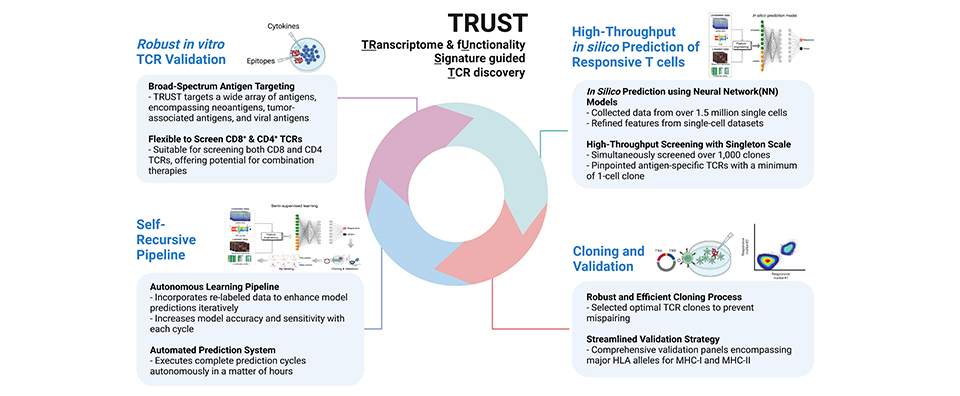 AI驅(qū)動(dòng)的高通量平臺(tái),結(jié)合單細(xì)胞轉(zhuǎn)錄組與功能分析技術(shù),快速發(fā)現(xiàn)治療性TCR克隆,大幅縮短TCR藥物開(kāi)發(fā)周期并降低成本。